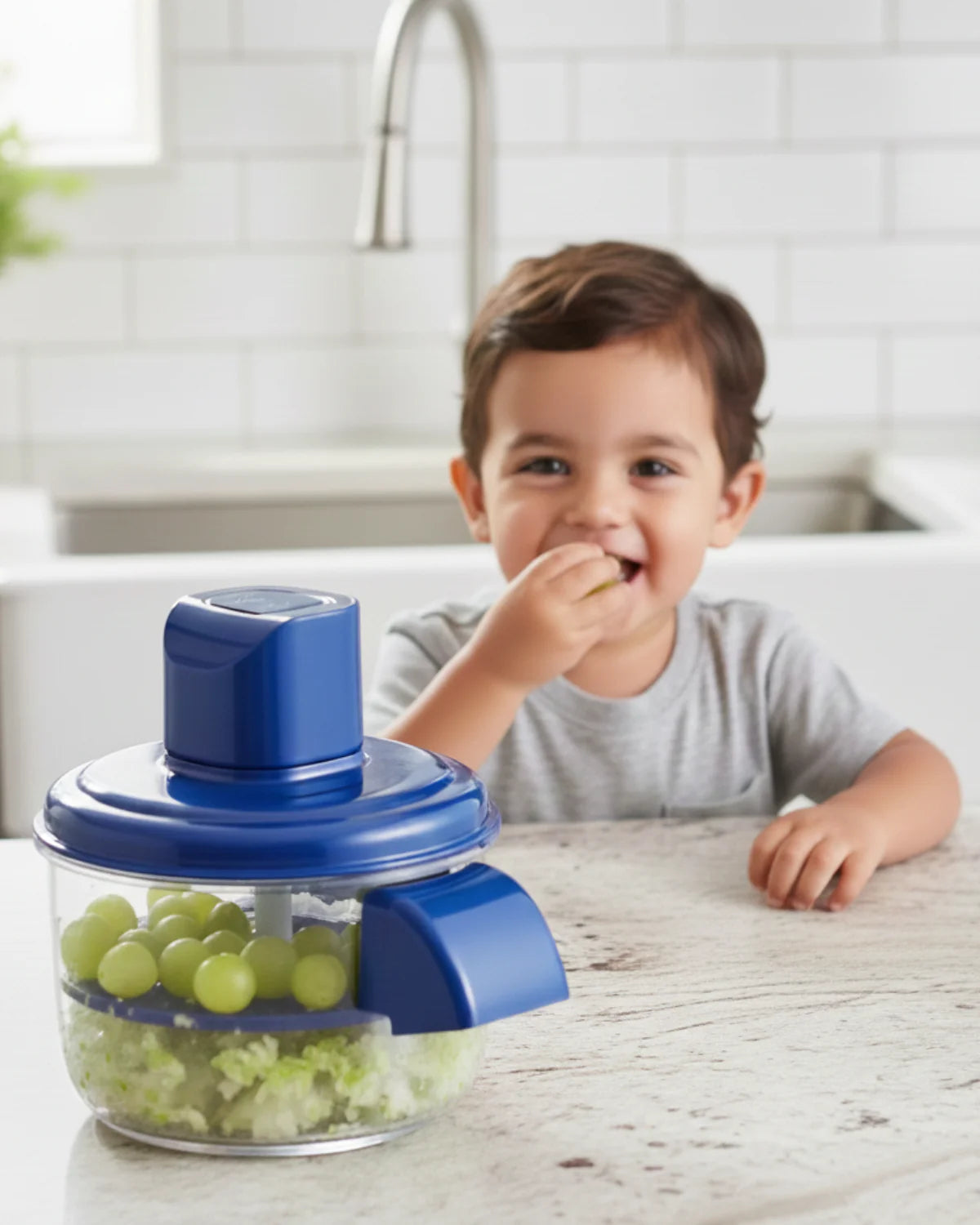 Effortless peeling for grapes, cherry tomatoes, plums, garlic, and more — all with one press. The covered blade system keeps your hands safe, while the cordless USB design makes prep fast and clean.